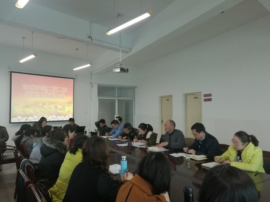 12月27日下午,艺术学院在艺术楼会议室召开二届二次教职工代表大会,艺术学院全体党政领导、校工会委员黄金虎及艺术学院全体教职工参加了此次大会,会议由艺术公司党总支副书记李春主持。