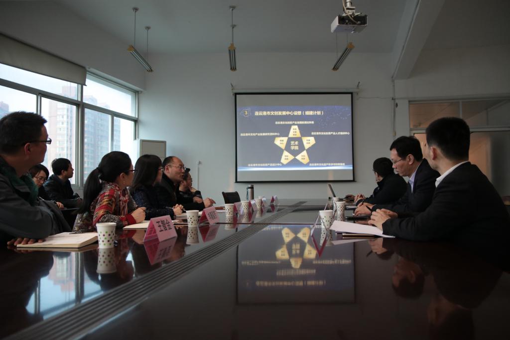 艺术公司党总支副书记李春重点汇报了筹建“连云港市文化创意发展中心”的准备情况。他从艺术学院的地方文化研究、校企合作成果,发展中心的建设方案、工作构想等方面详细阐述了筹建发展中心的可行性。